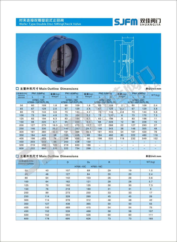 对夹连接双瓣旋启式止回阀